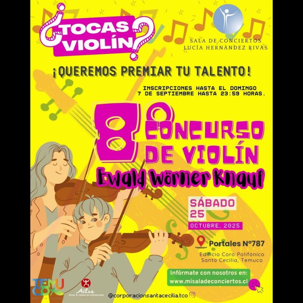 -VII Concurso de Violín Ewald Wörne Knauf, único en el Sur de Chile, ofrece participar a niños, niñas y jóvenes en 3 Categorías: menores de 9 años, menores de 13 años y hasta 18 años.
