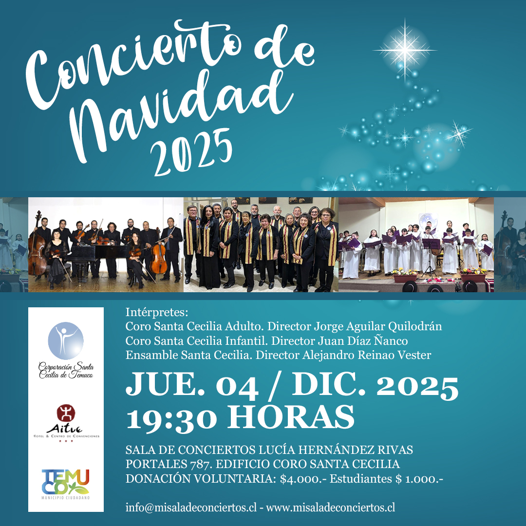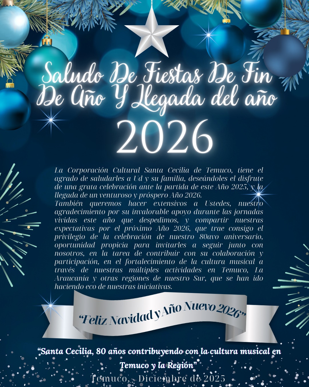 La Corporación de Coros y Conciertos Santa Cecilia de Temuco, a partir del mes de Abril del 2025, ofrecerá clases de instrumentos musicales, dirigido al estudiantado de Temuco, de entre 10 y 14 años, que esten interesados/as en aprende musica a través de tocar instrumentos musicales y participar del programa que se derrrollará en dependencias de nuestra Corporación, Portales N° 787, edicficio Coro Polifonico Santa Cecilia.